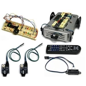 Get everything you need to make the machine complete robot systems research projects in one convenient package. A breadboard Microcontroller Starter Kit, Robot Kits Base, Expansion Pack and Sensor Remote Control Expansion Pack are included! With this kit you can all plans of the electronic models and robot projects covered in the tutorials. Learn to control LEDs, a piezo speaker, an LCD monitor, servo motors and infrared sensors.